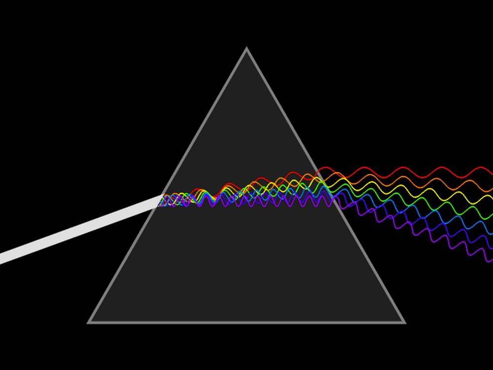Üçgen prizmadan geçerek dağılan bir ışık demetini gösteren şekil.