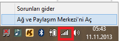 1- Bilgisayarınızın sağ altında bulunan ağ kısmını sağ klikleyin ve açılan pencereden Ağ ve Paylaşım Merkezini Aç deyin.