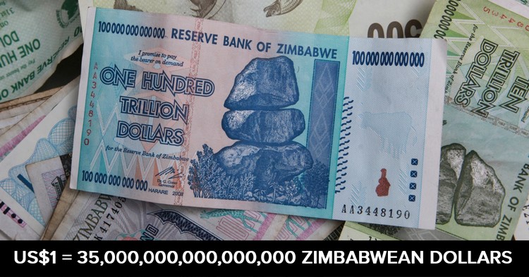 Günlük enflasyonları bile çoğu ülkenin aylık hatta yıllık enflasyonundan yüksek seviyelere ulaşan ülkede, halk 1 kilo et için 1 bavul dolusu para taşımak durumunda kalmış, bir ürün alabilmek adına yaklaşık 11 kg ağırlığında paranın transfer edildiği söylentileri gerçekleştirilmiştir. 500.000.000.000.000 (beş yüz trilyon) Zimbabve Doları sadece 1,8 Amerikan Dolarına karşılık gelmektedir (Kasım 2009). Ülkedeki enflasyon oranı %158.000.000 civarında tahmin edilmektedir. Bu, dünyanın en büyük enflasyon oranıdır (Temmuz 2009). Ülkede tedavülde olan en küçük para 100.000.000 Zimbabve Dolarıdır.