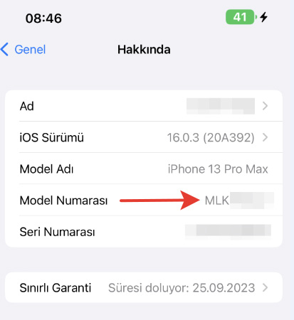 Telefonunuzun AYARLAR – GENEL – HAKKINDA kısmında bir MODEL NUMARASI yer alacaktır. Bu model numarası oldukça önemli. Çünkü model numarası “M” ile başlıyorsa bu telefonunuzun sıfır olduğu anlamına gelecektir. Farklı bir şekilde “F” ile başlıyorsa tamir edilmiş ve “N” ile başlıyorsa değişim cihazı anlamına gelecektir. Bu cihazların oldukça ucuza satıldığını belirtmemde fayda var. Bu nedenle sorunsuz bir iPhone telefon arıyorsanız model numarası M ile başlayan telefonları tercih etmeniz gerekiyor.