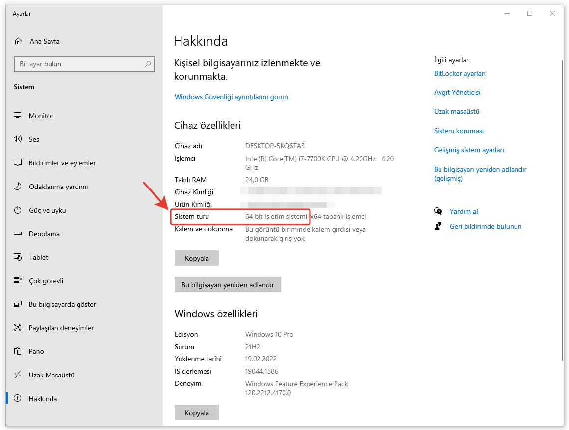Burada, “Sistem Türünüz” olarak listelenen bilgiler, hangi Windows sürümünü çalıştırdığınızı açıkça belirtecektir.