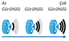 Trafikten kaynaklı bu ses problemini azaltabilmek amacıyla lastik etiketinde lastiklerin “Dış Gürültü” seviyelerine de yer verilmekte. Hoparlör sembolünün yanında görülebileceği üzere sesin şiddetini sembolize eden ses dalgası işaretleri yer alır.