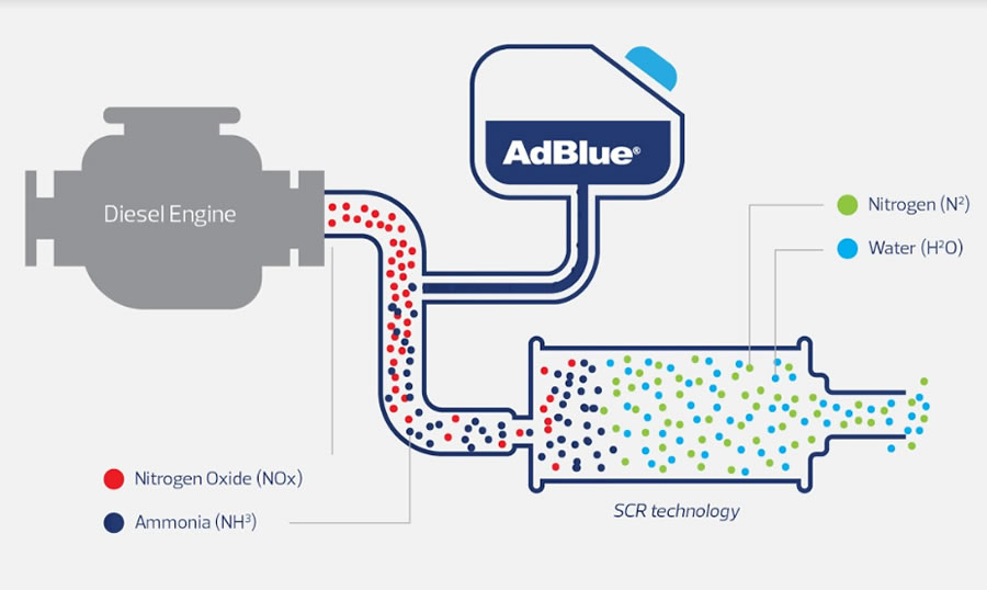 Dizel motorlu otobüs, midibüs ve kamyon gibi araçlarda kullanımıyla gündemde yer alan AdBlue, egzos emisyonunda önemli bir yardımcıdır. Bu madde aracılığıyla kimyasal ayrıştırma esnasında azotoksikler, su buharına ve azot gazına dönüştürülerek egzosdan dışarı salınır. Böylece, hava kirliliği minimum düzeye indirilmiş olur. Daha basit bir ifade ile AddBlue; dizel motorlu araçların egzozundan dışarı çıkan zararlı gazların çevreye verdiği zararın azaltılması için geliştirilmiş bir sistem, bir kimyasal maddedir. Sıvı bir çözelti olan AdBlue aslında azotlu (üre) ve su bazlı bir çözelti olup, egzoz sistemindeki Nitrojen Oksitle buluştuğunda onu su buharına, azot gazına ve amonyoğa çevirerek egzozdan dışarı çıkarır. Bu reaksiyonun sonucunda ortaya çıkan gaz ve su buharı doğal yolla oluştuğu için çevreyi kirletmez ve egzozdaki salımdan ötürü olan hava kirliliği azalmış olur. AdBlue sıvısı dizel motorlu araçların egzoz sistemlerine püskürtülerek çalışıyor.
