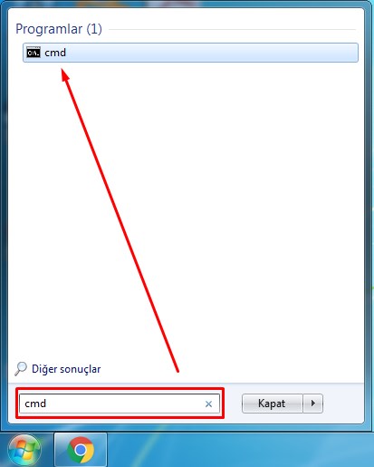 1- Uzaktaki bir bilgisayarı kapatmak için Başlat kısmına cmd yazıp ENTER yapın. (Yada Windows 8,10 kullanıyorsanız Windows+R