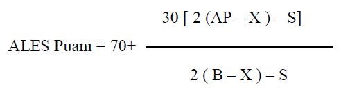 Ağırlıklı puanlar hesaplandıktan sonra bu puanlar, aşağıdaki formül kullanılarak 100 üzerinden puanlara dönüştürülecektir.