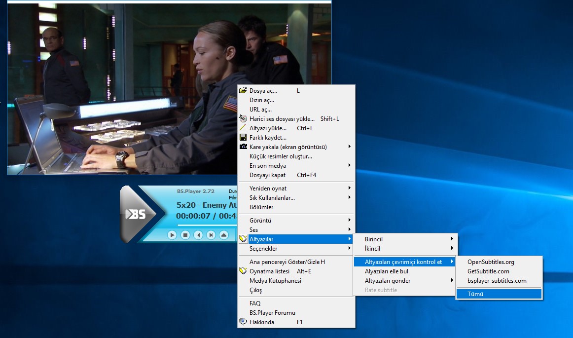 Kullandığım program aynı zamanda bir media oynatıcı olan BS Player programı. Dilerseniz bu program ile de film dizilerinizi izleyebiliyorsunuz.