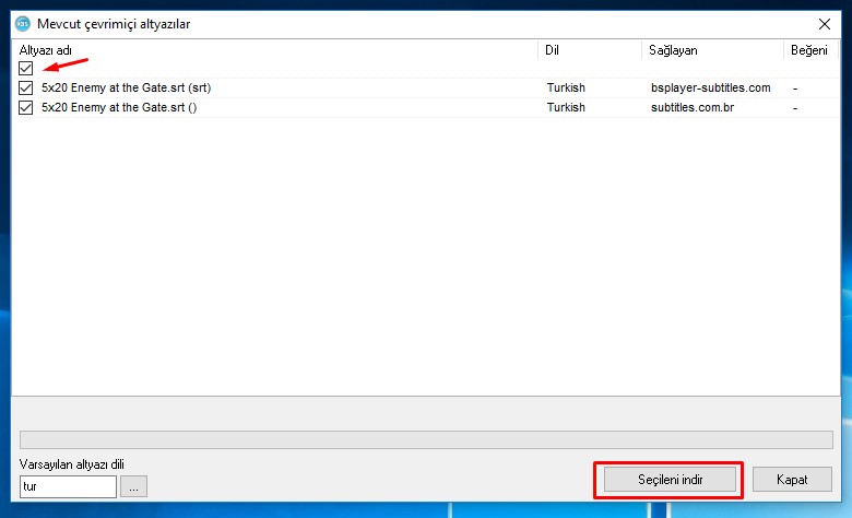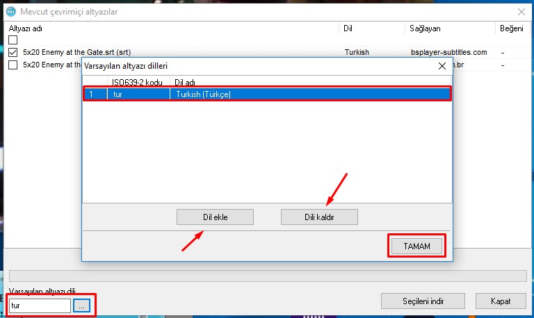 8- Son olarak altyazı indirme aşamasında dilerseniz sadece Türkçe altyazıların indirilmesini sağlayabilirsiniz.