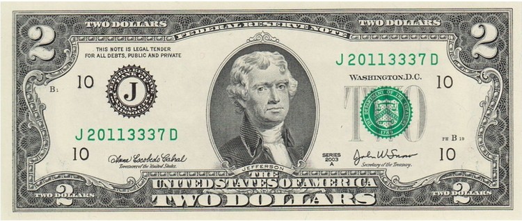 Amerikan Bağımsızlık Bildirisinin yazarı olan Thomas Jefferson, ABD hükümetinin 3 başkanıdır. Amerika’nın kurucuları arasında yer alır ve Thomas Jefferson hakkında binlerce eser yazılmıştır. 2 Dolar nadir bulunan bir paradır.