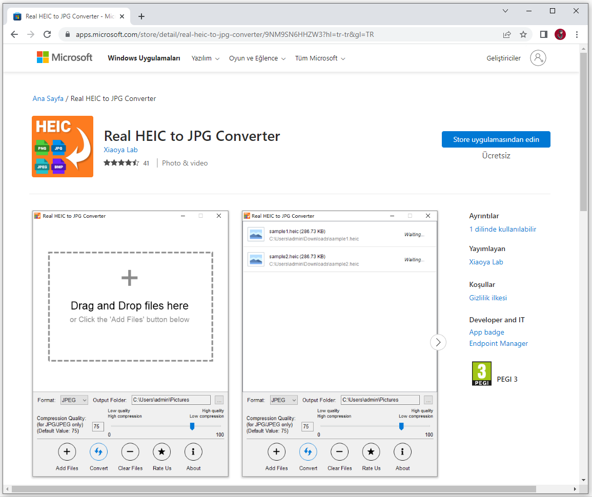 Farklı bir yöntem olarak aşağıda bağlantısını paylaştığımız Real HEIC to JPG Converter uygulaması ile HEIC fotoğraflarının Windows işletim sistemine sahip cihazlarda JPEG formatına dönüştürülmesini sağlamaktadır.