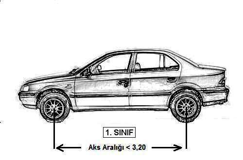 1. Sınıf Araç: AKS aralığı (dingil mesafesi) 3.20 metre altında olan araçlar 1. sınıf araçtır.