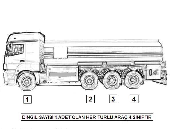 4. Sınıf Araç: AKS adedi (dingil sayısı) 4 ve 5 adet olan her türlü araç 4.sınıf araçtır.