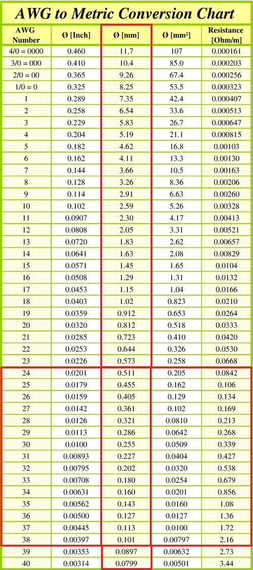 Not: Kırmızı değerler arasındaki sayılar ülkemizde en yaygın kullanılan kablo ölçümleridir. Yine şekilde görüldüğü gibi bir AWG değeri karşılığında Resistance (Dİrenç/Ohm) ve Amper’e denk geliyor.