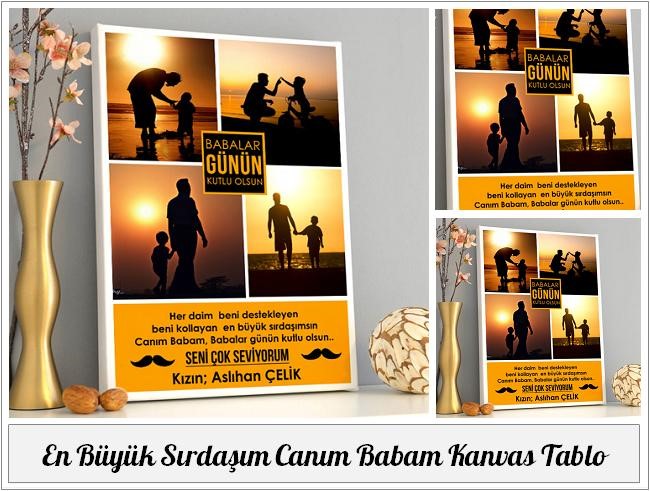 Babanızla duygusal anlar yaşamanızı sağlayacak en büyük sırdaşım canım babam kanvas tablo ile çok samimi bir armağana sahip olacaksınız. Anılar hepimizi ayakta tutan en kuvvetli sihirlerden biridir. Üzerinde fotoğrafınızın olacağı bu canvas tabloyla babanıza en güzel anılarınızı süper bir kanvas tablo ile yaşatmış olacaksınız. Kanvas tablo üzerinde fotoğrafınızın daha kaliteli çıkması için lütfen yüksek netlikte fotoğraflar seçmeye özen gösteriniz. Sizi mutlu eden bu özel insanı sizler de ortada bir nedeniniz yokken ve hatta çok zamansız bir şekilde sevindirmek istemez misiniz? En büyük sırdaşım canım babam kanvas tablo ile sevindirmek istediğiniz babanıza babalar gününde hediyenizi verdiğinizde gözlerindeki ışıltıya ve mutluluğa hemen şahit olabileceksiniz. Hediyemen’in bu özel sayfasında başta babalar olmak üzere tüm değer verdiğiniz kimselere armağan edebileceğiniz kendisine özel olarak hazırlanacak anlamlı kanvas tablo hediye önerisi sizleri bekliyor.