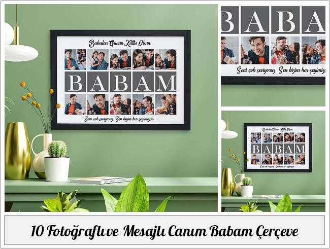 Babanızla babalar gününde unutulmaz mutlu anlar biriktirmenizi sağlayacak 10 fotoğraflı ve mesajlı canım babam çerçeve ile sizi yansıtan bir armağana sahip olacaksınız. Bazen bir fotoğraf çektirir, ama üzerinden zaman geçtiğinde o fotoğrafı nerede ve ne zaman çektirdiğimizi bile unuturuz. O fotoğraflar işte çok kıymetli fotoğraflardandır. Beğenilerinize sunduğumuz kişiye özel tasarım hediyeler ile beraber büyük ayrıcalıkların sahibi olacaksınız. Ayrıca 10 fotoğraflı ve mesajlı canım babam çerçeve dışında babalar gününe özel olarak babanıza hazırlatabileceğiniz farklı tasarımlarda hediye çeşitliliği de var. Bu ürününün üzerine özel babalar günü mesajlarınızı ekleyebileceğiniz gibi fotoğraf baskısı da yaptırabilirsiniz.