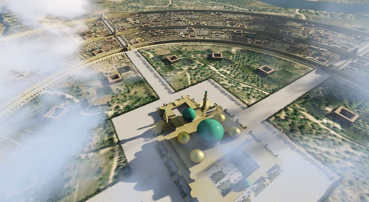 Devasa bir kaleyi andıran şehrin merkezine büyük bir camii, onun hemen yanına da Halifenin sarayı yerleştirilmiştir. Halifenin sarayının çevresine, yani plandaki en küçük daireye ise hanedanlığın diğer üyeleri için köşkler ve çeşitli askeri ve idari binalar yerleştirilir.