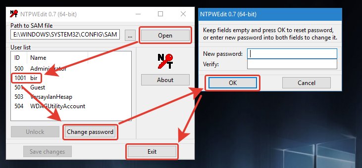 İşlemimiz tamamlandı. Şimdi USB belleği bilgisayarınızdan çıkarın ve bilgisayarınızı yeniden başlatın. Böylece herhangi bir şifre girmeden bilgisayarınız açılacaktır.