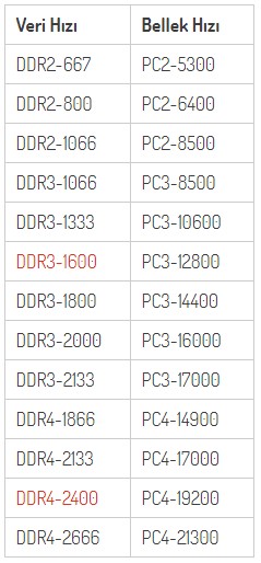 Sizin tam olarak nedir bilmiyorum ancak yaygın olarak karşılıklar aşağıdaki gibidir. PC4-17000 – 2133 MHz, PC4-19200 – 2400 MHz, PC4-21300 – 2666 MHz, PC4-22400 – 2800 MHz,PC4-24000 – 3000 Mhz, PC4-25600 – 3200 Mhz, PC4-28800 – 3600 MHz, PC4-30900 – 3866 MHz, PC4-26600 – 3333 MHz, PC4-30000 – 3733 MHz, PC4-32000 – 4000 MHz, PC4-27200 – 3400 MHz, PC4-26400 – 3300 MHz, PC4-27700 – 3466 MHz.