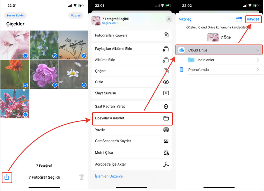 Tabi bu yükleme işlemi bittikten sonra Ayarlar kısmında “iCloud Fotoğraflar” senkronizasyonunu kapatırsanız bu fotoğraflar silinecektir. Bu nedenle bu görselleri iCloud Drive klasörüne taşımayı unutmayınız. Taşıdıktan sonra “iCloud Fotoğraflar” senkronizasyonunu kapatabilirsiniz…