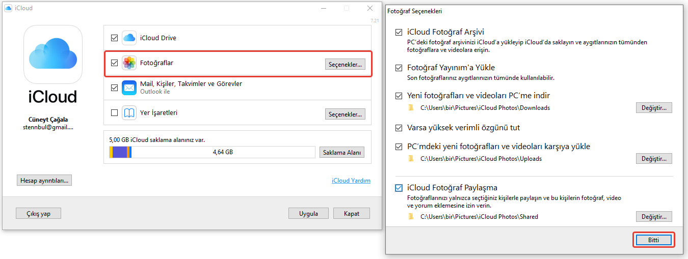 3- iCloud Uygulaması ile Bilgisayar iPhone Arasında Fotoğraf Aktarımı