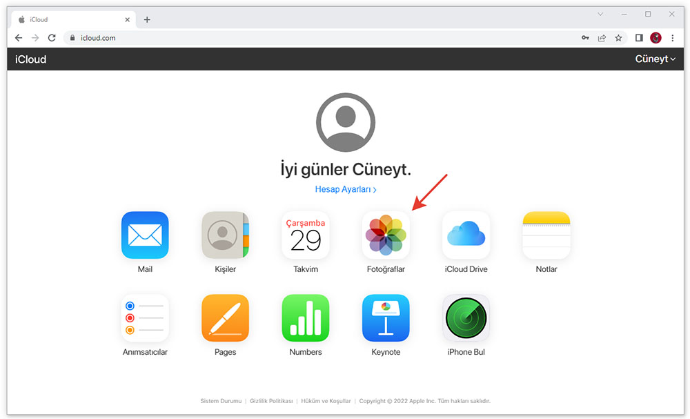 iCloud.com ile iPhone’dan Bilgisayara Fotoğraf Atma