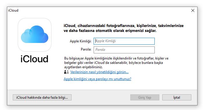 Şimdi öncelikle altta verdiğim bağlantıya giderek Windows için geliştirilen iCloud Uygulamasını bilgisayarınıza indirin.