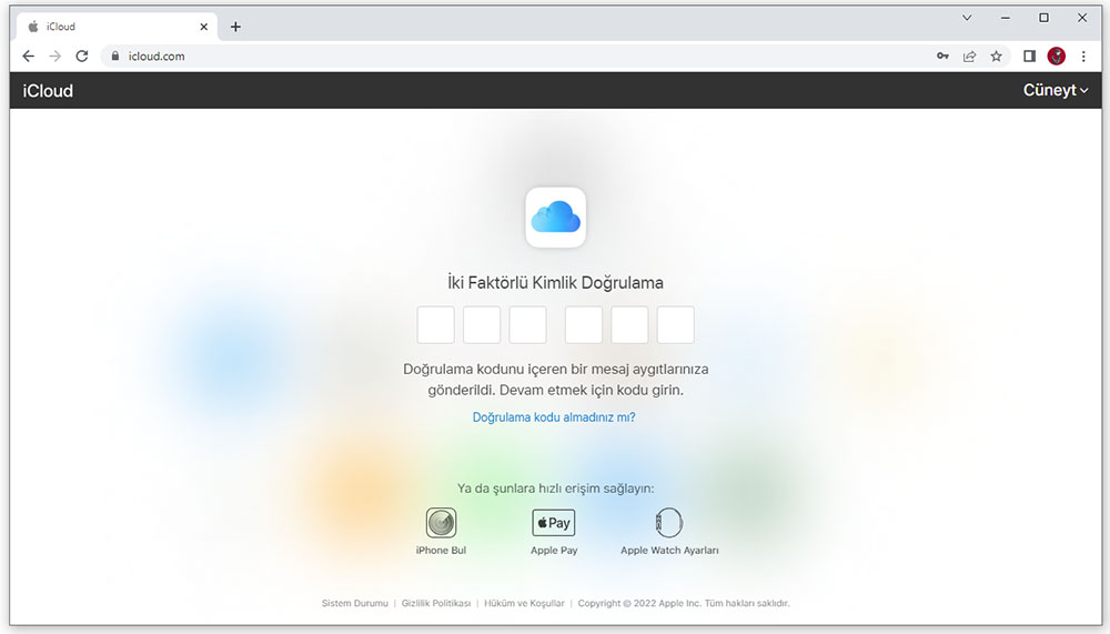 Bu kodu doğru bir şekilde girdikten sonra iCloud oturumuz açılmış olacaktır.