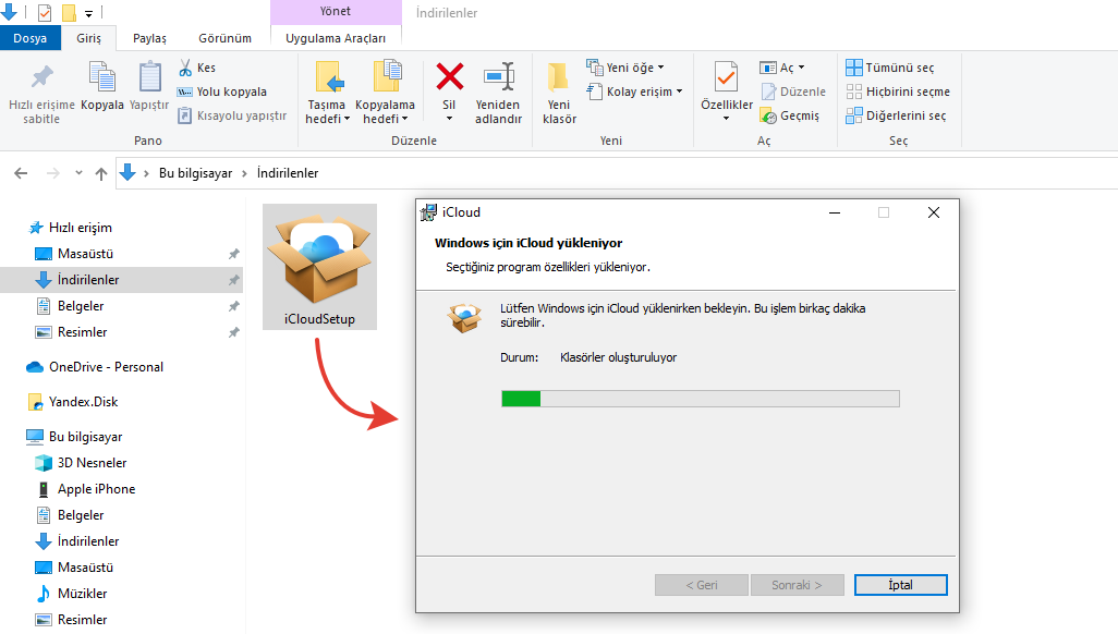 İndirdiğiniz iCloudSetup uygulamasını çift tıklayarak çalıştırın ve kurulumunu tamamlayın.