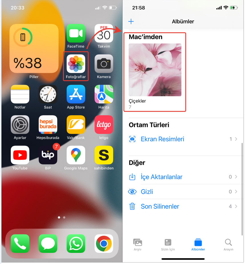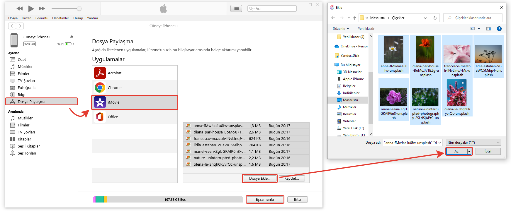 5- iTunes ve iMovie ile Bilgisayar iPhone Arasında Fotoğraf Transferi