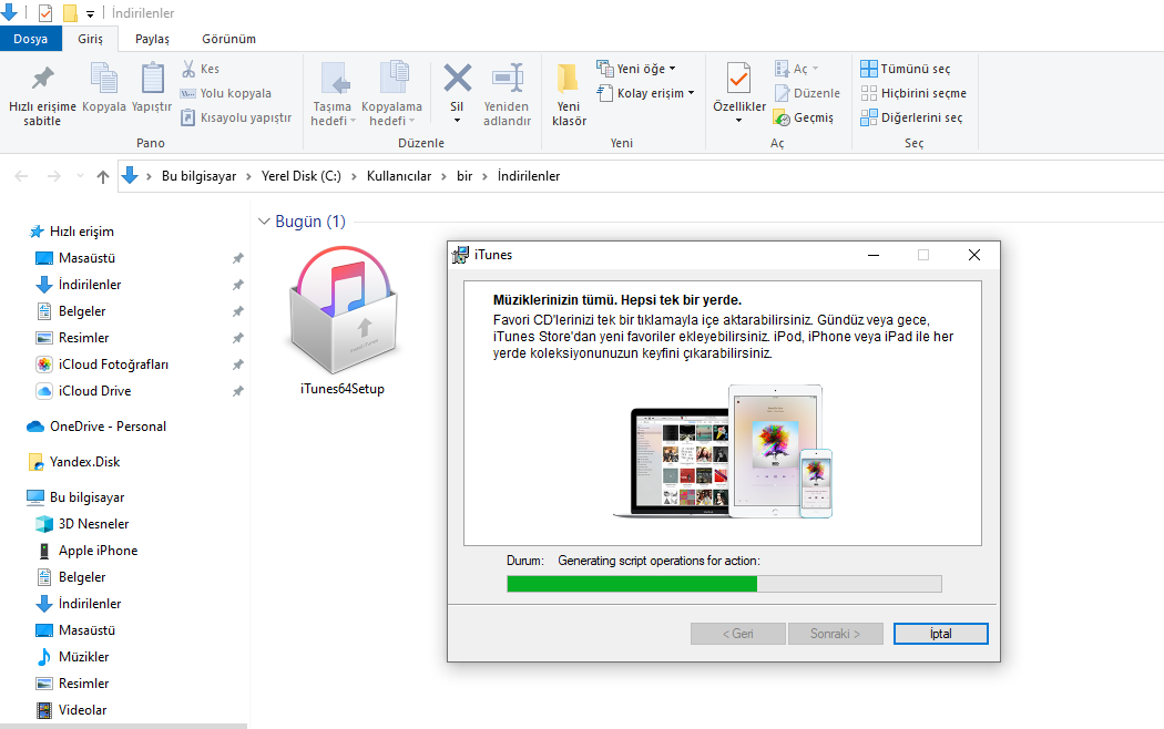 İndirdiğiniz iTunesSetup uygulamasını çift tıklayarak çalıştırın ve kurulumunu tamamlayın.