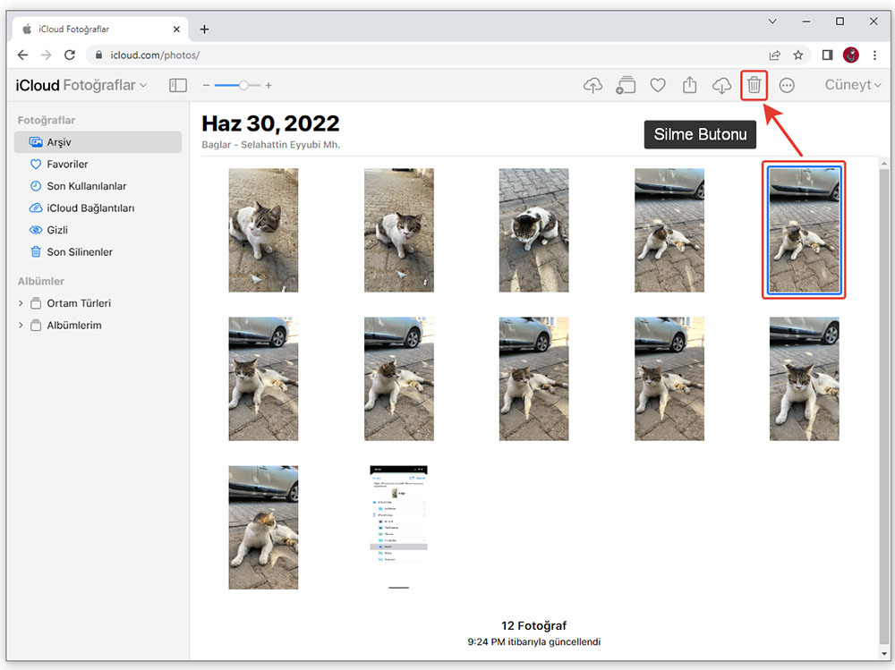 Önemli Not: Burada bir görseli sildiğinizde o görsel telefonunuzdan da silinecektir. Aynı şekilde telefonunuzdan bir görseli sildiğinizde o görsel iCloud Fotoğraflardan da silinecektir. Yukarıda dediğim gibi iCloud Fotoğraflar telefonunuzdaki fotoğrafların bir kopyasıdır ve internet ile senkronize çalışır. Diyelim ki telefonda internetiniz kapalı ve bir fotoğraf sildiniz. iCloud Fotoğraflara bu senkronize bilgisi gelmediği için interneti açana kadar fotoğraf iCloud Fotoğraflarda yer alır. Umarım anlatabilmişimdir.