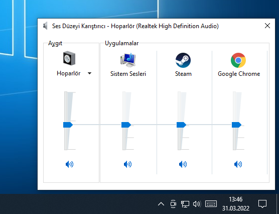8- Bu aşamada ise ses simgesinin üzerini sağ tıklayıp “ses düzeyi karıştırıcısını aç” dediğimizde karşımıza gelen sayfadan “minimum düzeydeki sesi” üst seviyelere taşımanız gerekecektir. Bazen fark etmeden veya bir hata sonucu bir uygulamanın sesini azaltabiliyoruz. Örneğin burada açık durumdaki “Google Chrome” sesini kısarsanız sadece “Google Chrome” tarayıcısı üzerinde açtığınız sesler daha az gelecektir. Mesela “YouTube” üzerinden dinlediğiniz müzik sesleri daha az veya hiç gelmeyecektir.