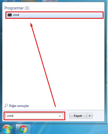 1- Başlat kısmına gidin cmd yazıp entera basın. (Yada Windows+R