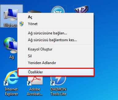 Bilgisayarınızın kaç bit olduğunu öğrenmek için yapacağınız işlem oldukça basit. Bunu öğrenmek için Masaüstünüzden Bilgisayarım simgesinin üzerine gelip SAĞ KLİK yapın ve açılan panelden ÖZELLİKLER deyin. Ordan açılan pencereden Sistem Türü yazan yerin karşısında ki bilgi bilgisayarınızın kaç bit olduğunu gösterir.