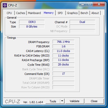 Timings yani Zamanlamalar kısmında ilk DRAM Frequency kısmında 798,1 Mhz bulunuyor. Bu gerçek zamanlama yani -tamamlarsak- 800 Mhz oluyor. Etkin zamanlamayı bulmanız için buradaki değeri her zaman iki ile çarpıyoruz. Yani 2×800 Mhz=1600 Mhz‘dir. Yani benim RAM 1600 Mhz oluyor.