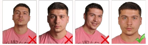 Gözler tamamen açık (kapanmamış, kısılmamış), saçlar kulakları kapatmamış, düz-önden çekilmiş, net bir görüntüsü olan (leke v.s olmayacak), başın konumu dik olmalı (baş herhangi bir yöne dönük olmamalıdır), ağız kapalı olmalı (gülme v.s olmamalı), arka fon beyaz ve desensiz olmalıdır. (fonda gölgeler oluşmamalı).
