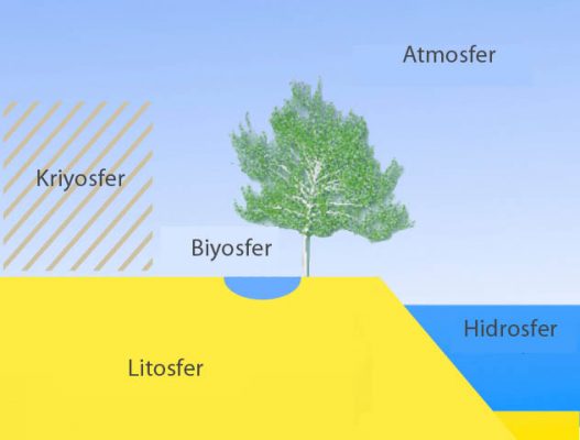 Dünyada canlıların yaşadığı 16–20 km kalınlığında tabaka; “canlı yüzey” de denir. Bu isimlendirme ilk kez Fransız bilgini Lamarck tarafından ortaya atıldı ve 20. yüzyılın başında bilim dünyasınca benimsendi. Biyosferin atmosfer içindeki yüksekliği 10000 m‘ye ulaşır. Bu yükseklikten öte bakteri ve mantar sporlarına rastlanmamıştır. Yerde yaşayan kara hayvanları için biyosfer 6500–6800 m, yeşil bitkiler için 6200 m yüksekliğe kadar çıkabilir. Denizin altında 5000 m derinlikte canlıların yaşadığısaptandığından bu da biyosferin alt sınırını oluşturur.