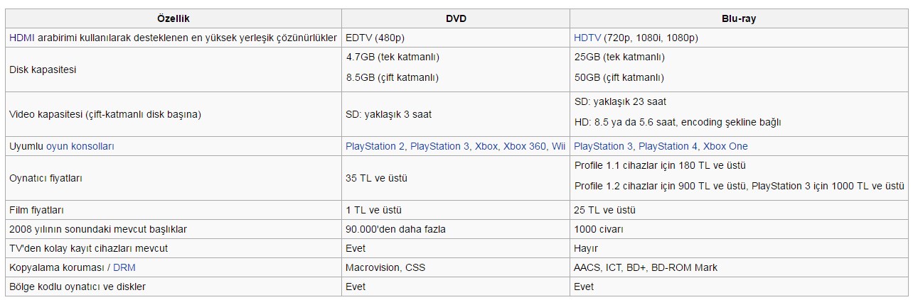 - BD-ROM yazılımlar, oyunlar ve film dağıtımları için sadece okunabilir ( ReadOnly ) biçim.