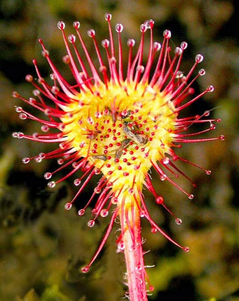 Güneş gülü (Drosera rotundifolia) bitkisinin çoğu Avustralya’da yaşar. Yaprakları kürek veya yuvarlak şekildedir, uzun tüylüdür bu yapraklar canlı yüzeye yaklaştığında yapışkan bir nektar salgılar ve böceğin kaçmasını önlemek için kıvrılır. Böylece av boğularak ölür ve sindirilir. Bu bitkiyle ilgili ilginç bir durum var ki bu bitkinin yapraklarında Apiomerus türü böcekler yaşıyor fakat bu bitkinin salgısı bu canlıları yakalayamıyor ve bu böcekler bitkinin avlarından kalanlarla besleniyor. Bu böceğin dışkısı da bu bitki tarafından sindiriliyor, bu ilişkileri mutualist yaşam olarak nitelendirilebilir.