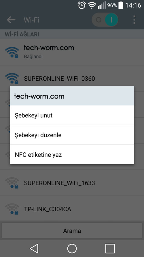 1- Öncelikle bağlandığınız Wifi Şifresini öğrenmeniz gerekiyor. Çünkü bu işlem için wifi şifrenizi bilmeniz gerekiyor.