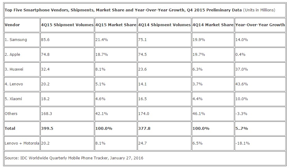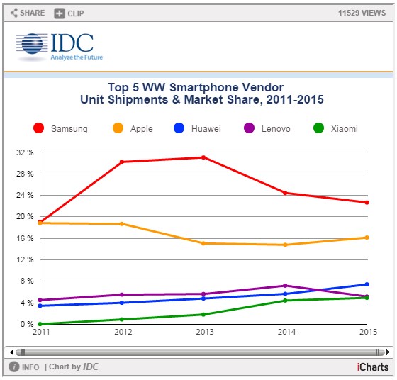 Dünyadaki pazar araştırma ve analiz firmalarından biri olarak güvenilir sonuçlar veren IDC 2015 yılına ait akıllı telefon pazar raporunu yayımladı.Rapor incelendiğinde ortaya çıkan conuç ise şöyle;