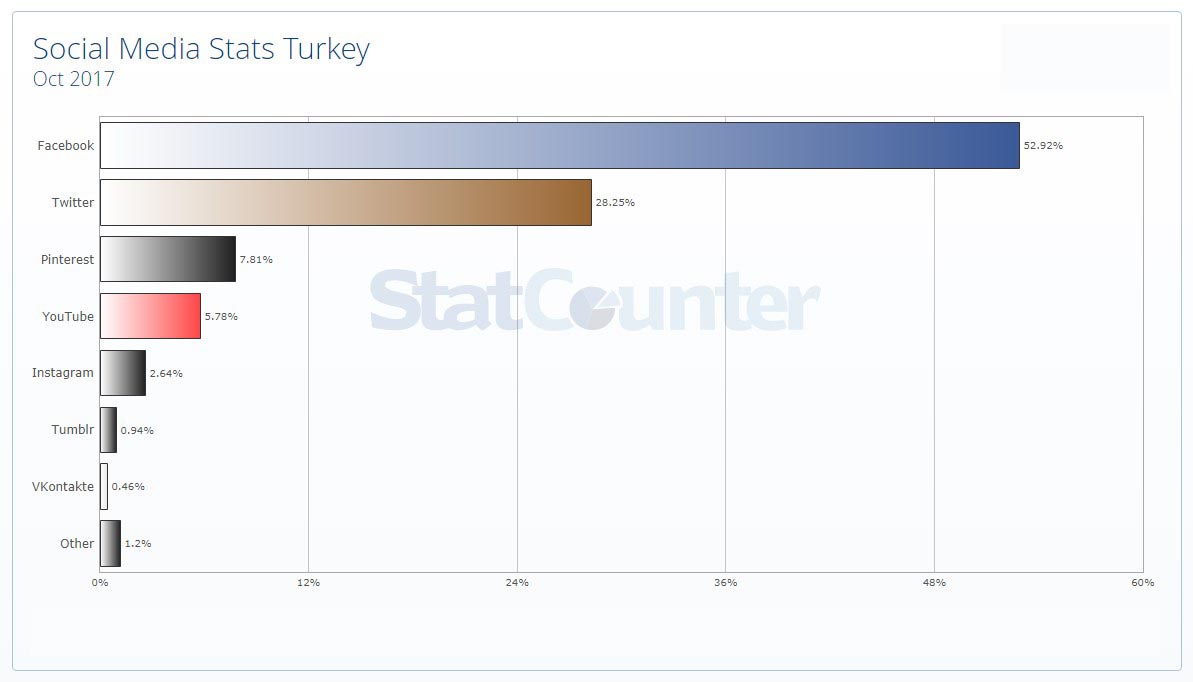 Türkiye’de en çok kullanılan sosyal medya hesapları sırasıyla Youtube, Facebook, Instagram, Twitter,WhatsApp, Facebook Messenger. Bazı kaynaklarda -bir alttaki foto- Youtube sosyal medya olarak geçmediğinden eklenmemiş. Ancak bize doğru sıralamayı vermiş oluyor.