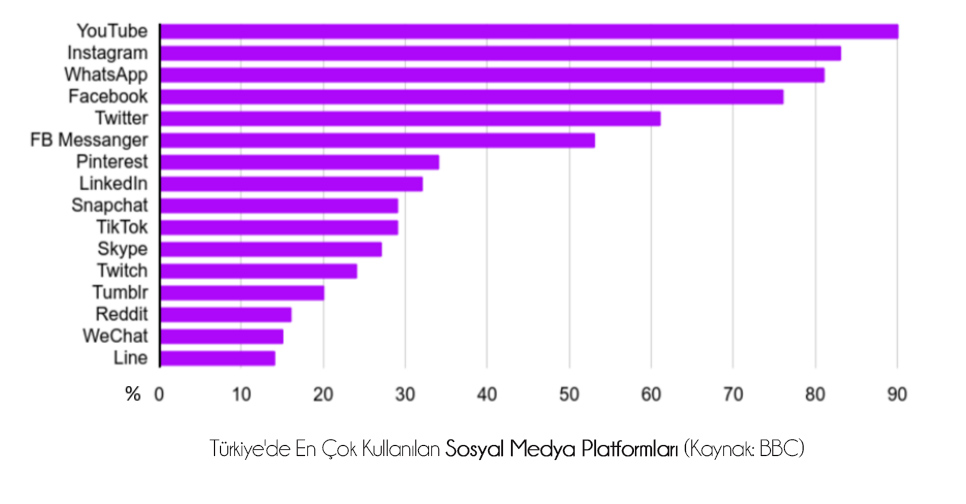 Dünyada en çok kullanılan sosyal medya platformları arasında;