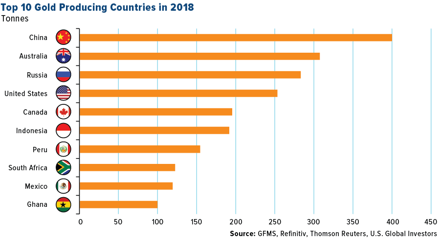Avustralya, yıllık 310 tonluk altın üretimi ile dünyanın en çok altın çıkaran ikinci ülkesi konumundadır. Avustralya 2018’de üretimini %6 artarak üst üste altı yıllık üretim artışı açıkladı.