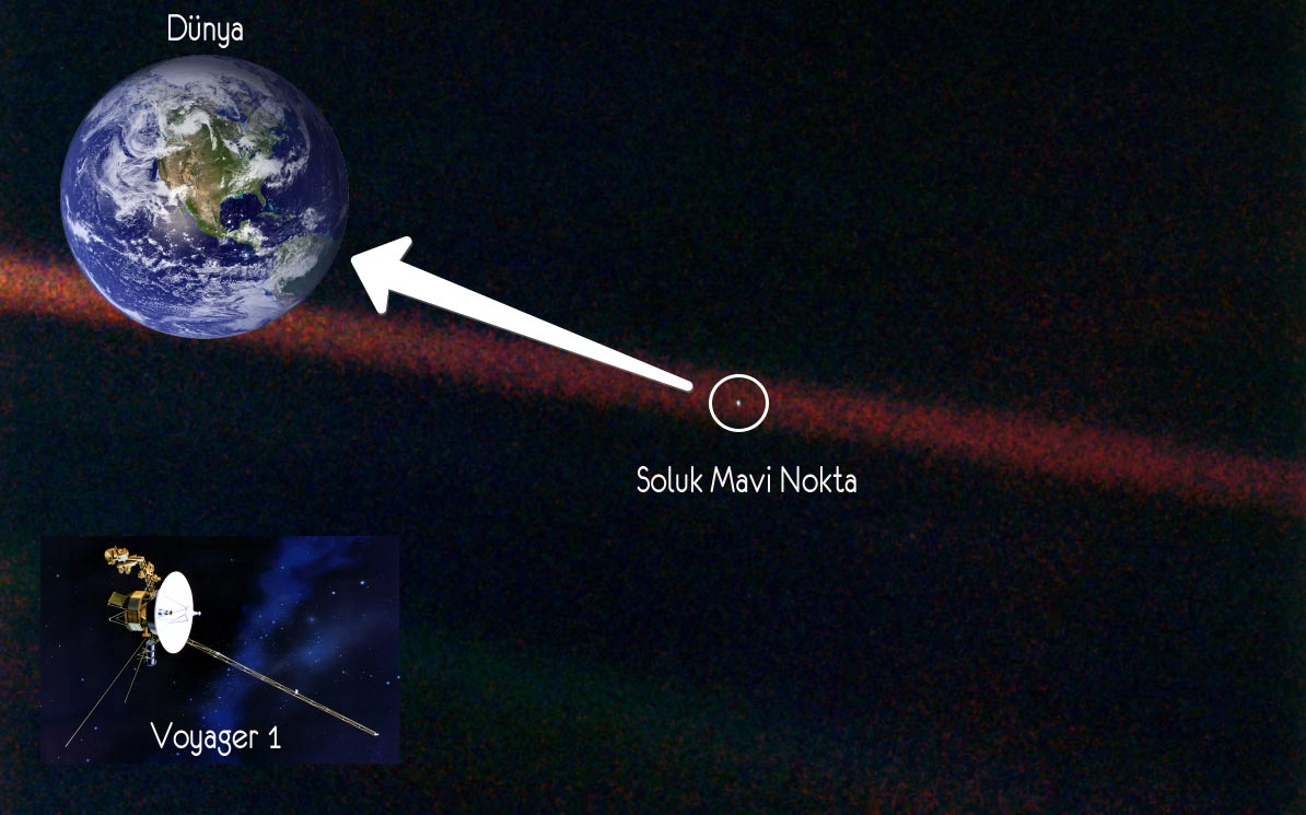 Voyager 1 sondası, dış güneş sistemini incelemek maksadıyla ABD tarafından 5 Eylül 1977‘de fırlatıldı. 14 Şubat 1990’da NASA, asli görevini tamamlamış ve artık Dünya’dan hayli uzaklaşmış olan Voyager 1’e yeni komutlar yollayarak Güneş Sistemi’ndeki tüm gezegenleri fotoğraflamasını sağladı. Gelen fotoğraflardan birinde, grenli bir siyah yüzey üzerinde uçuk mavi bir nokta görülüyordu. Bu, Dünya’ydı.