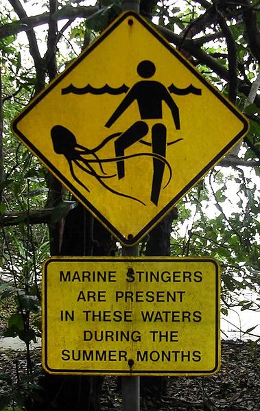 Avustralya’da Bir Plajda Yer Alan Kutu Denizanası Uyarı Tabelası