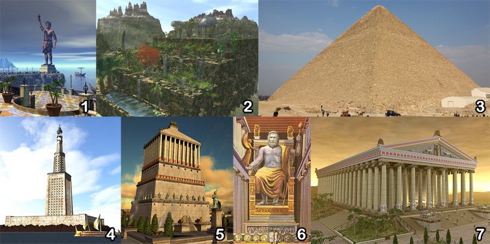 Giza Piramitleri’nin üçü birden Dünyanın Yedi Harikası listesine dahil değildir. Piramitlerden sadece Keops Piramidi bu listeye girmiştir. Keops Piramidi, 4. Hanedanlık zamanında MÖ 2560 yılında Firavun Khufu (Keops) tarafından yaptırıldı. Yapımının 20 yılı aştığı sanılmaktadır. Piramit yapıldığında 145,75 m yüksekliğindeydi. Yapıldığından itibaren 43 yüzyıl boyunca dünyadaki en yüksek yapı olarak kayıtlara geçmiştir. Keops Piramidi ilk inşa edilen olmasına rağmen dünyanın yedi harikası arasında günümüzde ayakta duran tek yapıdır.