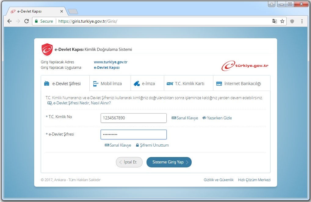 1- Trafik cezası sorgulaması için https://www.turkiye.gov.tr/ adresine gidin ve TC Kimlik Numarasınız ve size verilmiş olan şifrenizi girin ve SİSTEME GİRİŞ yapın.