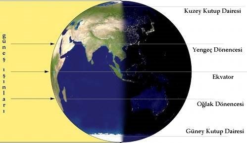 4- 21 Mart ve 23 Eylül tarihlerinde dünyanın her yerinde 12 saat gündüz – 12 saat gece yaşanır.