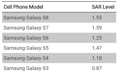 Samsun Galaxy Cep Telefonları SAR Değerleri