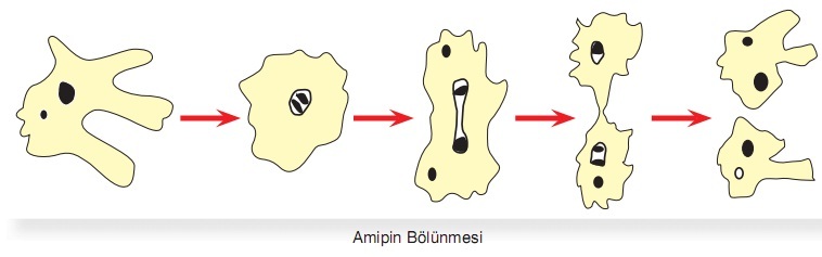 Arke, bakteri, amip, paramesyum ve diğer tek hücreli canlıların çoğunda görülür.